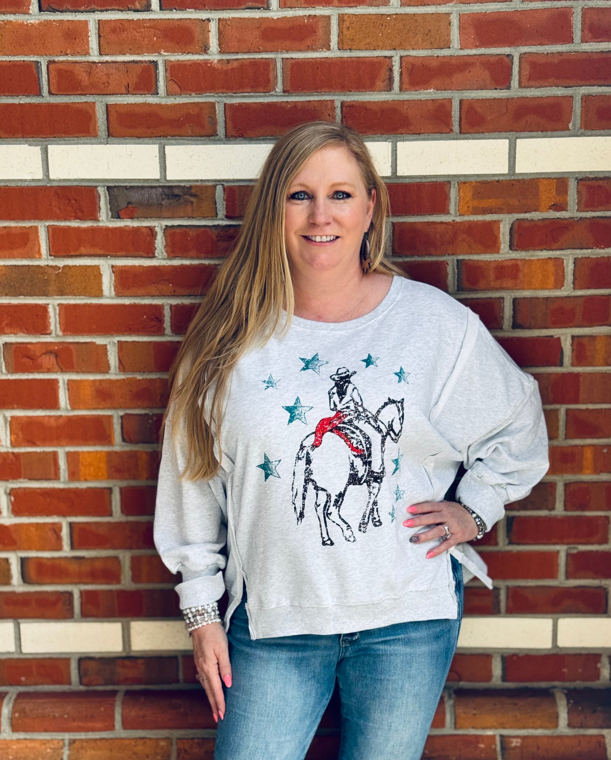 Kick up that boho-western vibe in our Desert Daydream graphic sweatshirt. Featuring front side slits that flatter and slenderize, plus split cuffs for that extra touch of unique charm, she’s anything but basic. The relaxed fit makes her easy to wear, while the western haze graphic keeps your look bold and free-spirited. Tammy is wearing a size small, and she fits true to size for that perfectly effortless, FABULOUS style. 🌵✨
