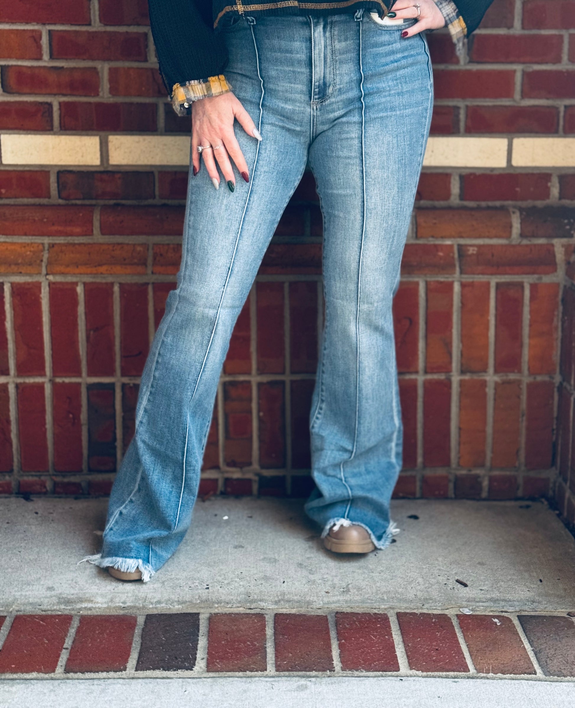 The flare leg brings that iconic retro vibe, while the raw hem keeps things effortlessly cool and customizable — rock them as-is or trim to your perfect length. And sister, don’t miss the magic detail: