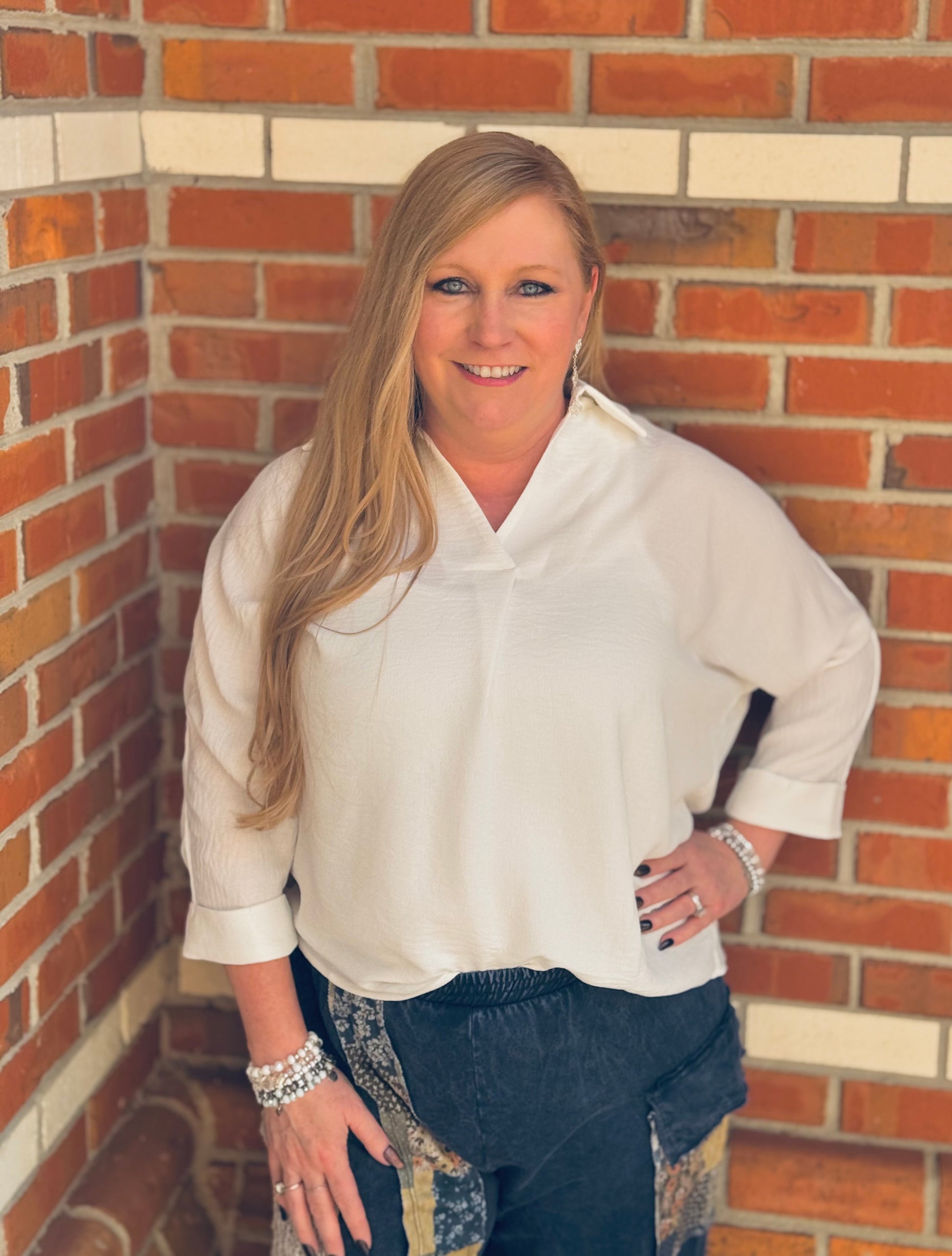 Effortless, chic, and oh-so-versatile — meet Simply Stunning, your new go-to for any occasion! This off-white beauty features a flattering V-neckline, a classic collar, and 3/4 cuffed sleeves for that polished yet easygoing vibe. The dolman fit gives her a relaxed silhouette that drapes beautifully on every body. Whether you’re dressing her up for dinner or keeping it casual with denim, she’s got that timeless boho elegance that never goes out of style.