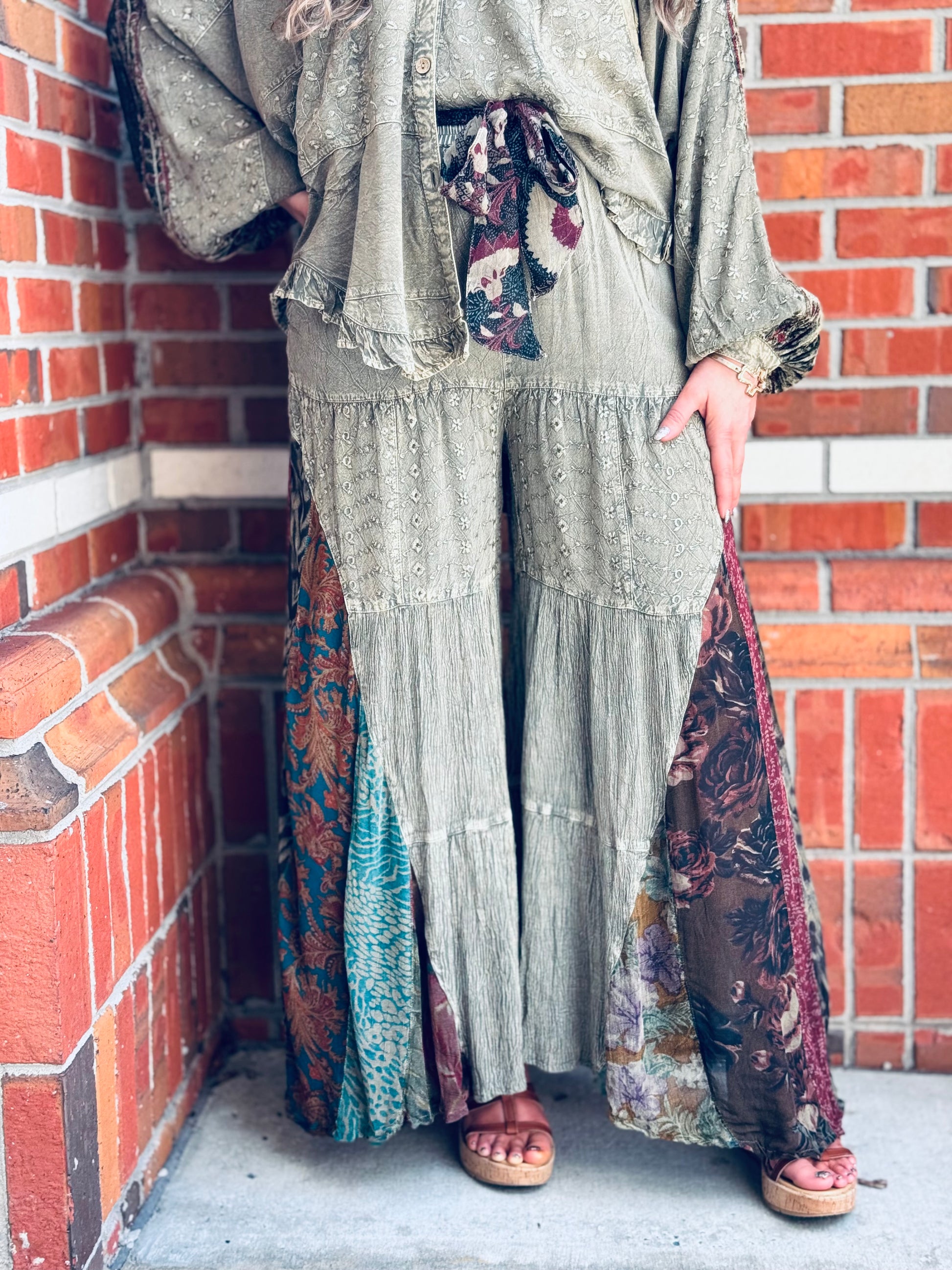 Boho luxe at its finest, our Velvet Stone Tie Pants are made to flow with effortless style. Featuring a comfy elastic waist with an adjustable tie, these wide-leg beauties are crafted with mixed fabrics that give them that signature boho vibe we love. Pair them with a simple tank for laid-back chic, or go all in with our matching Velvet Stone button-down for a head-to-toe look that’s FABULOUS, free-spirited, and oh-so unique, sister! ✨