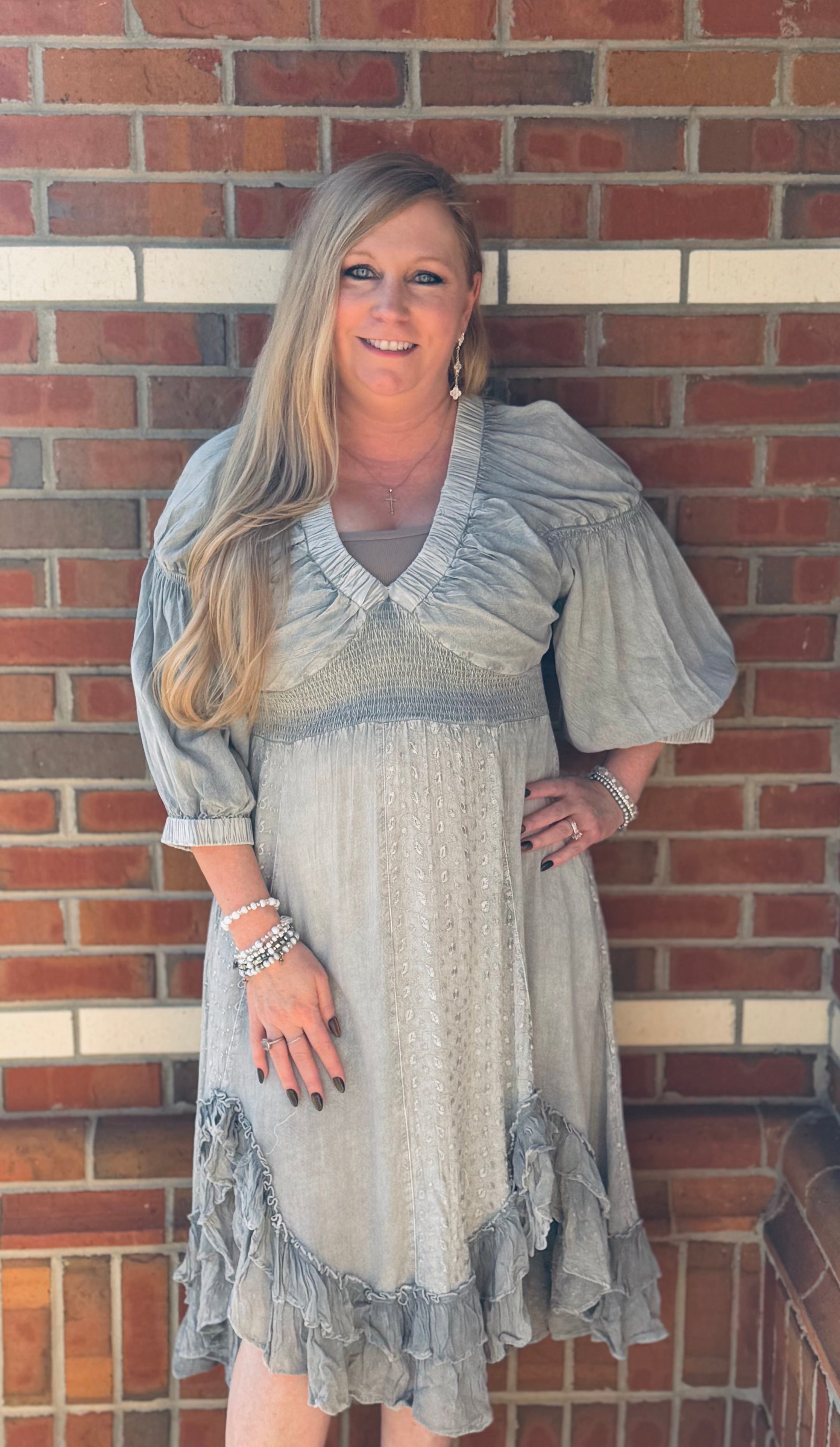 Turn heads and steal hearts in our Wildflower Whispers Dress — the perfect mix of boho charm and sassy spirit! This mid-length stunner features an elastic V-neckline for a flattering fit, flirty ruffle details that move with you, and gorgeous embroidery that gives it that handcrafted, free-spirited feel. She’s effortlessly chic, lightweight, and ready for any adventure — from brunch with your sisters to a night out under the stars.